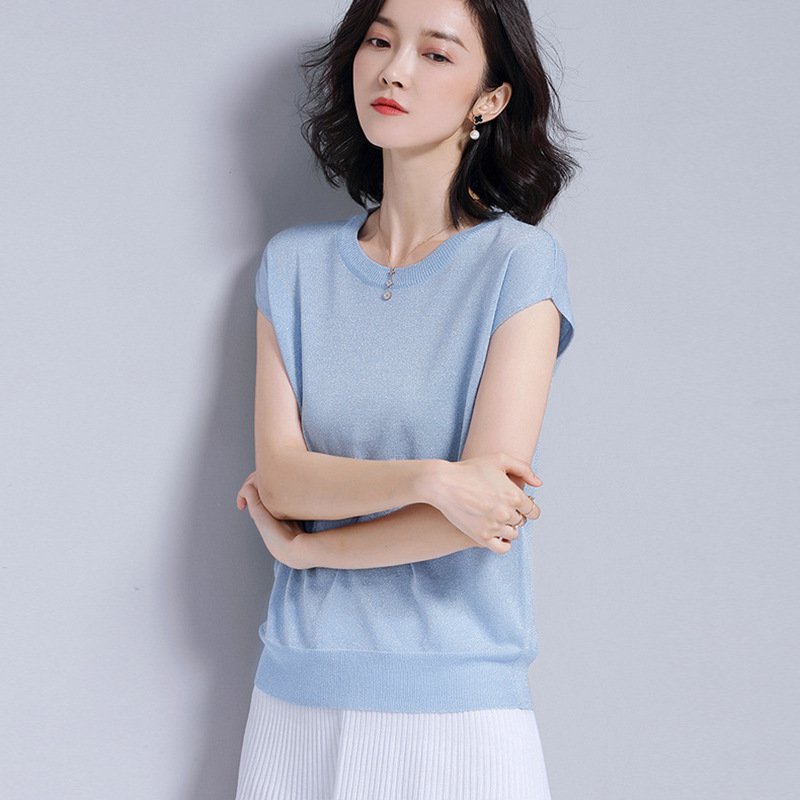 Ice silk knitted t-shirt for women